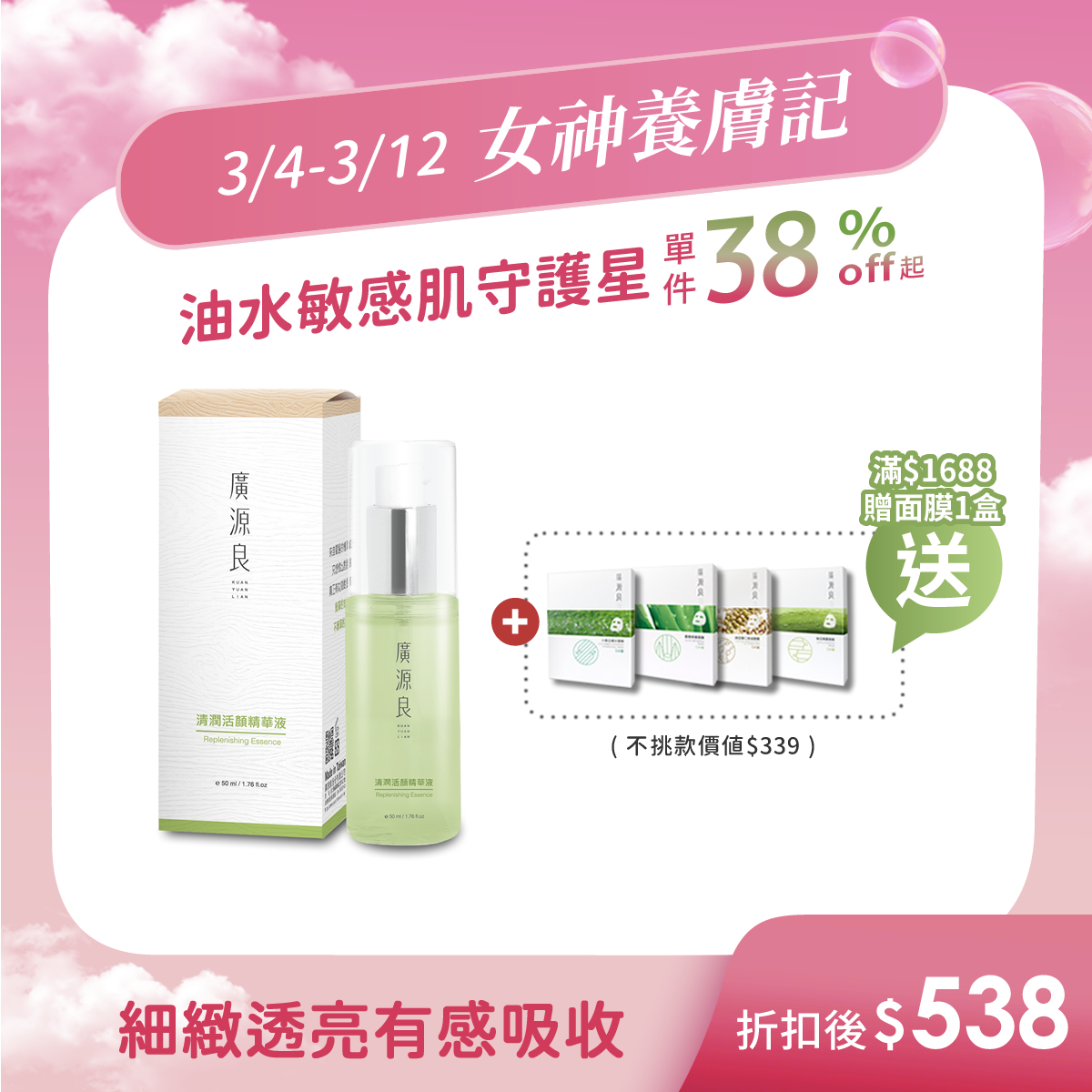 細緻透亮,清爽好吸收!清潤活顏精華液 50ml$538 -