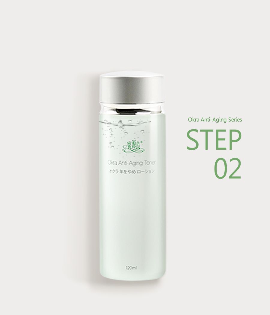 - ●Okra Anti-Aging Toner: With newly upgraded hyaluronic acid formula, Okra Anti-Aging Toner fully activates the water-locking and hydrating protection mechanism to make your skin both moist and rich. Polysaccharide extracts and Astragalus extracts were also combined to brighten, soften, rejuvenize, and revitalize your skin.