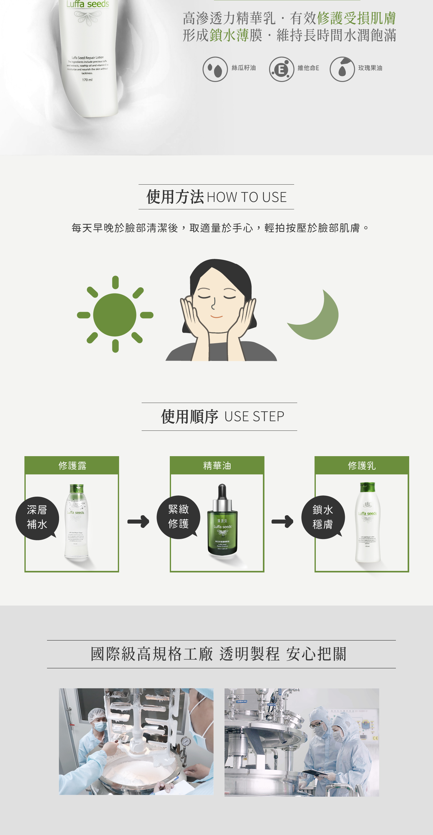 - ●敏感性肌膚使用前請先於局部皮膚做敏感性測試,無刺激反應方可使用。