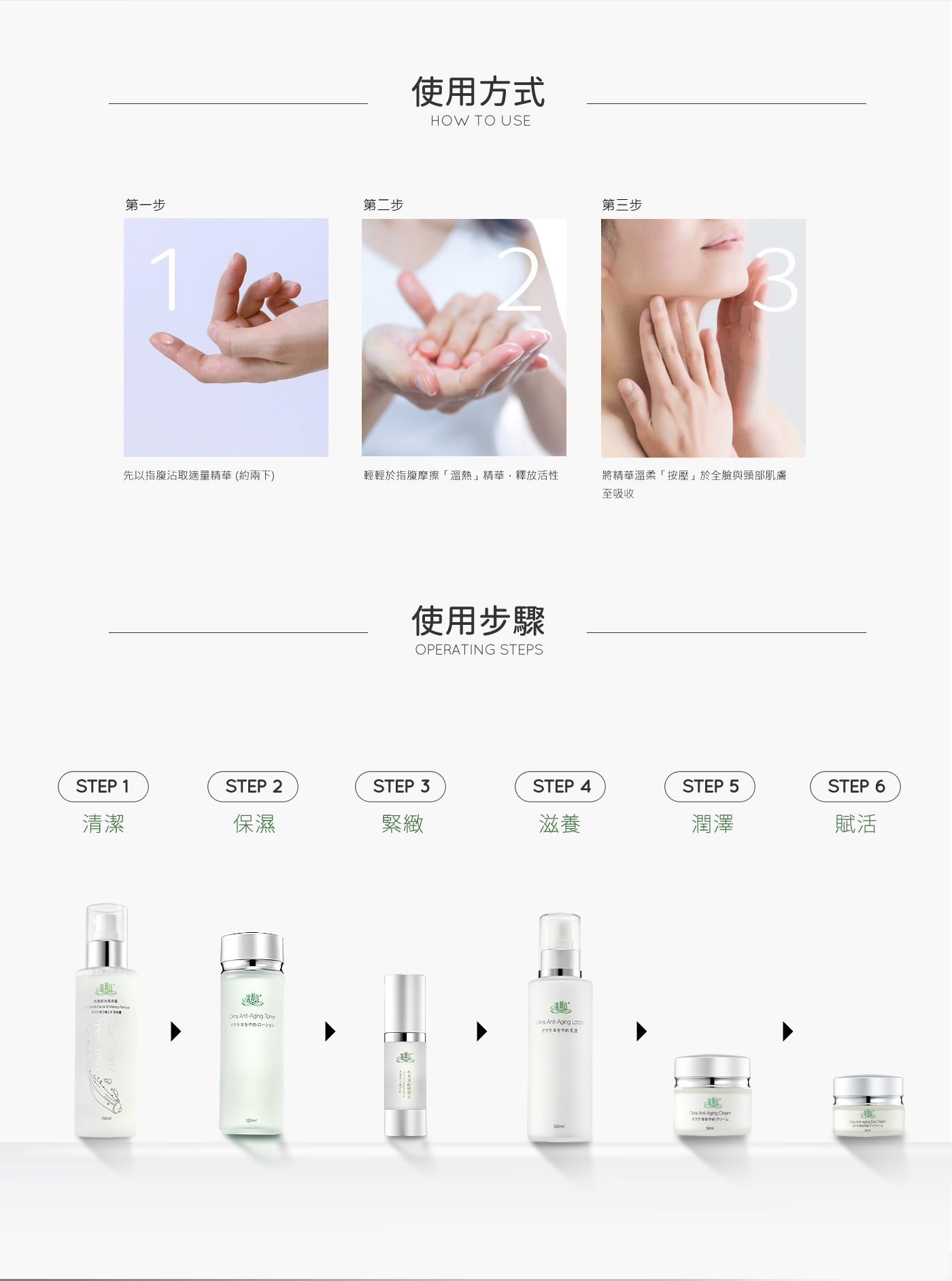 - 適用膚質:ㄧ般性及乾燥、老化性膚質適用。