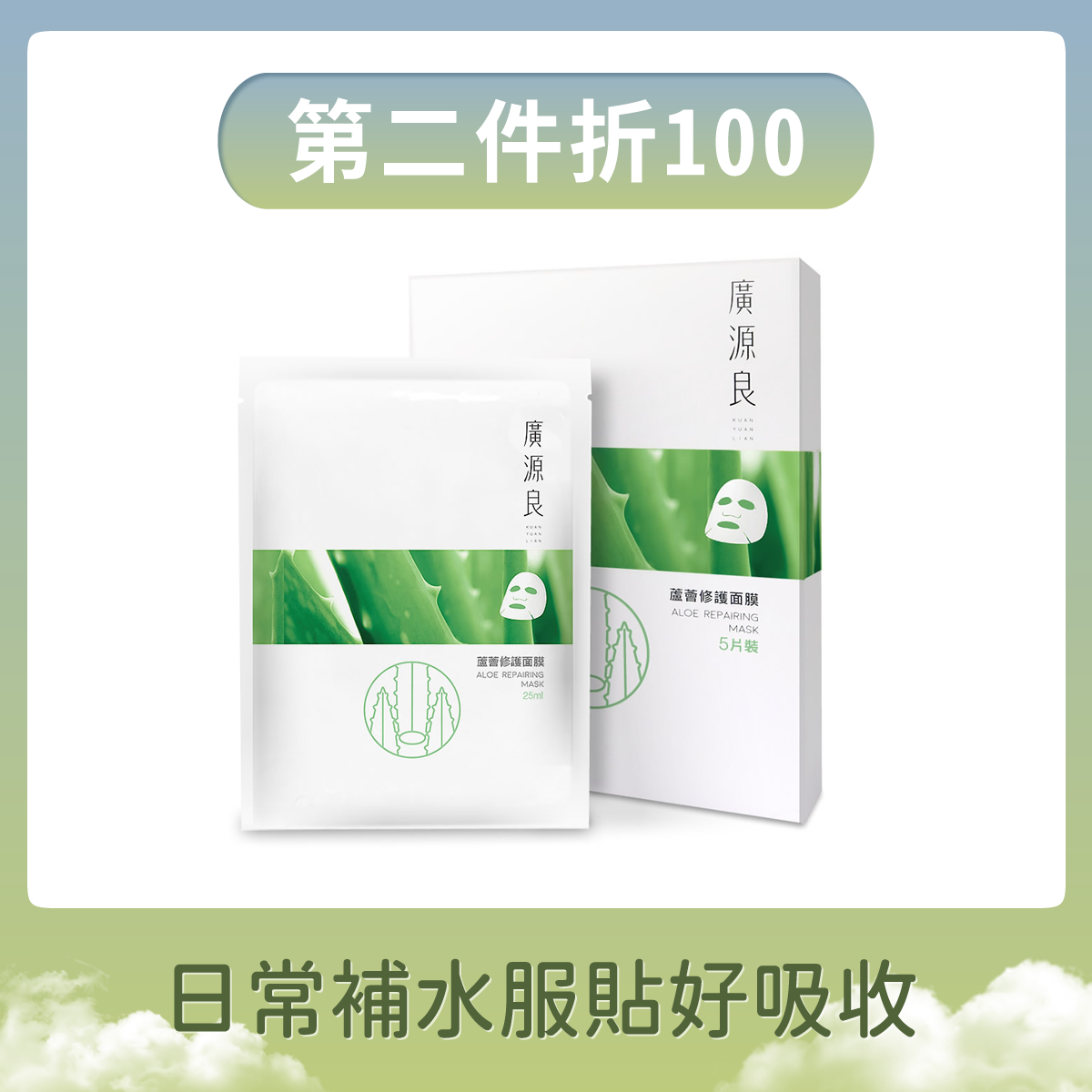 雙重補水及鎖水、有效舒緩呵護蘆薈修護面膜五入$299雙重補水及鎖水、有效舒緩呵護 -