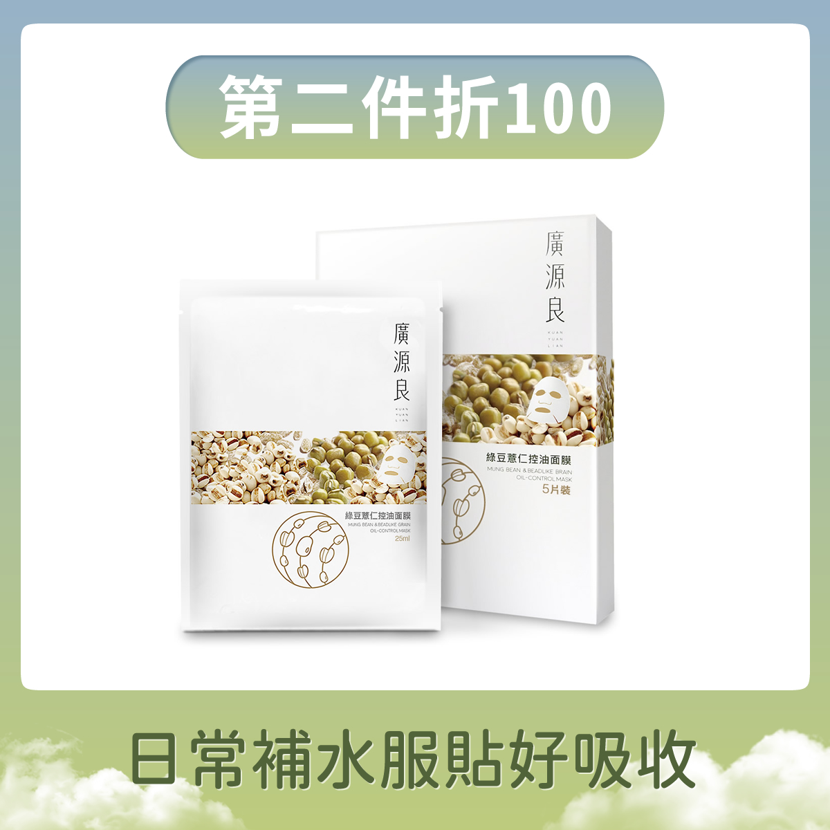 調理淨化、揮別暗沉綠豆薏仁控油面膜五入$299調理淨化、揮別暗沉