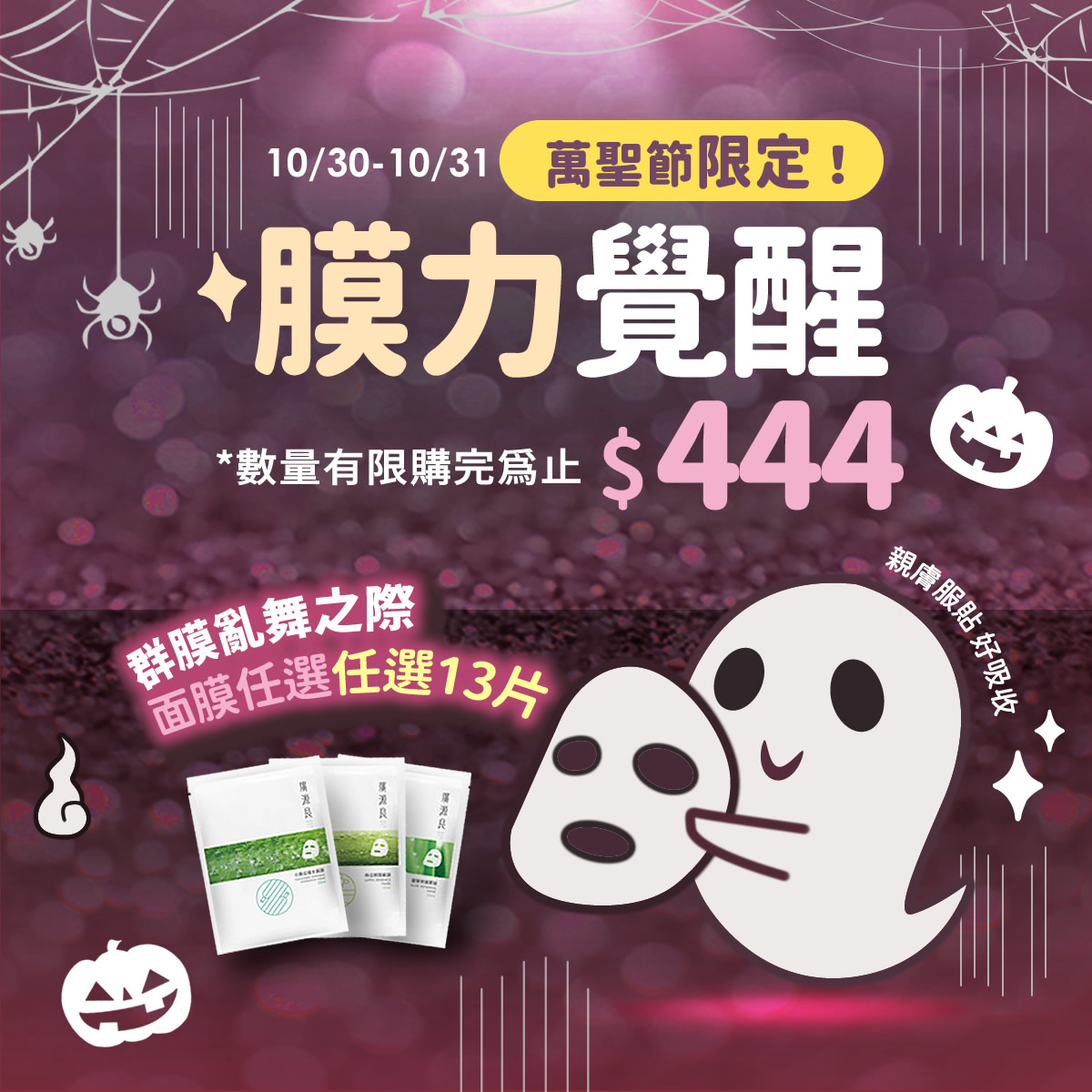【萬聖節👻膜力覺醒✨】10/30-10/31面膜任選13片$444🔥點我看更多👆👀..