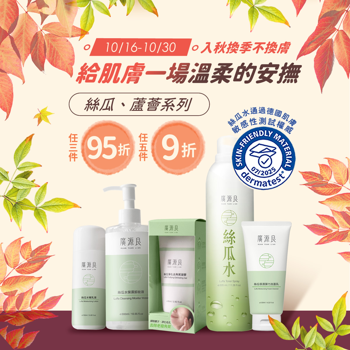 絲瓜、蘆薈系列任三件95折,五件9折