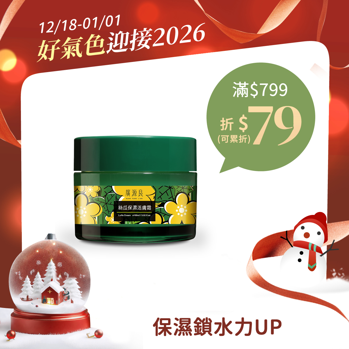 經典熱銷、零油感保濕絲瓜保濕活膚霜100ml (新配方升級)$299經典熱銷、零油感保濕 -