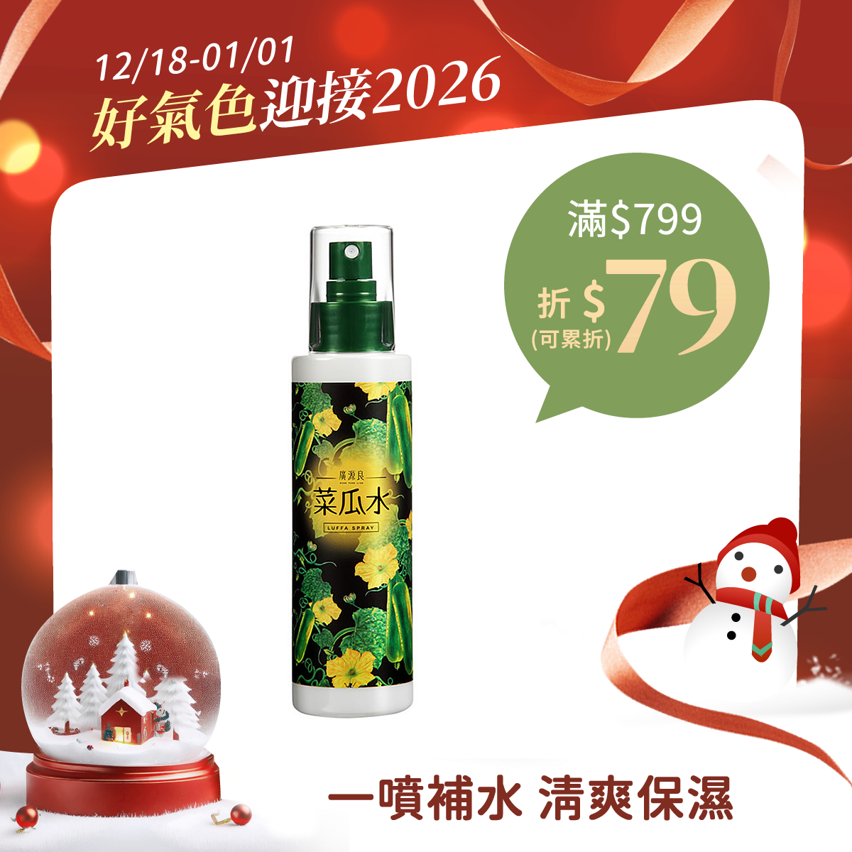 保濕升級新配方、細緻噴霧絲瓜水噴霧瓶320ml$399保濕升級新配方、細緻噴霧 -