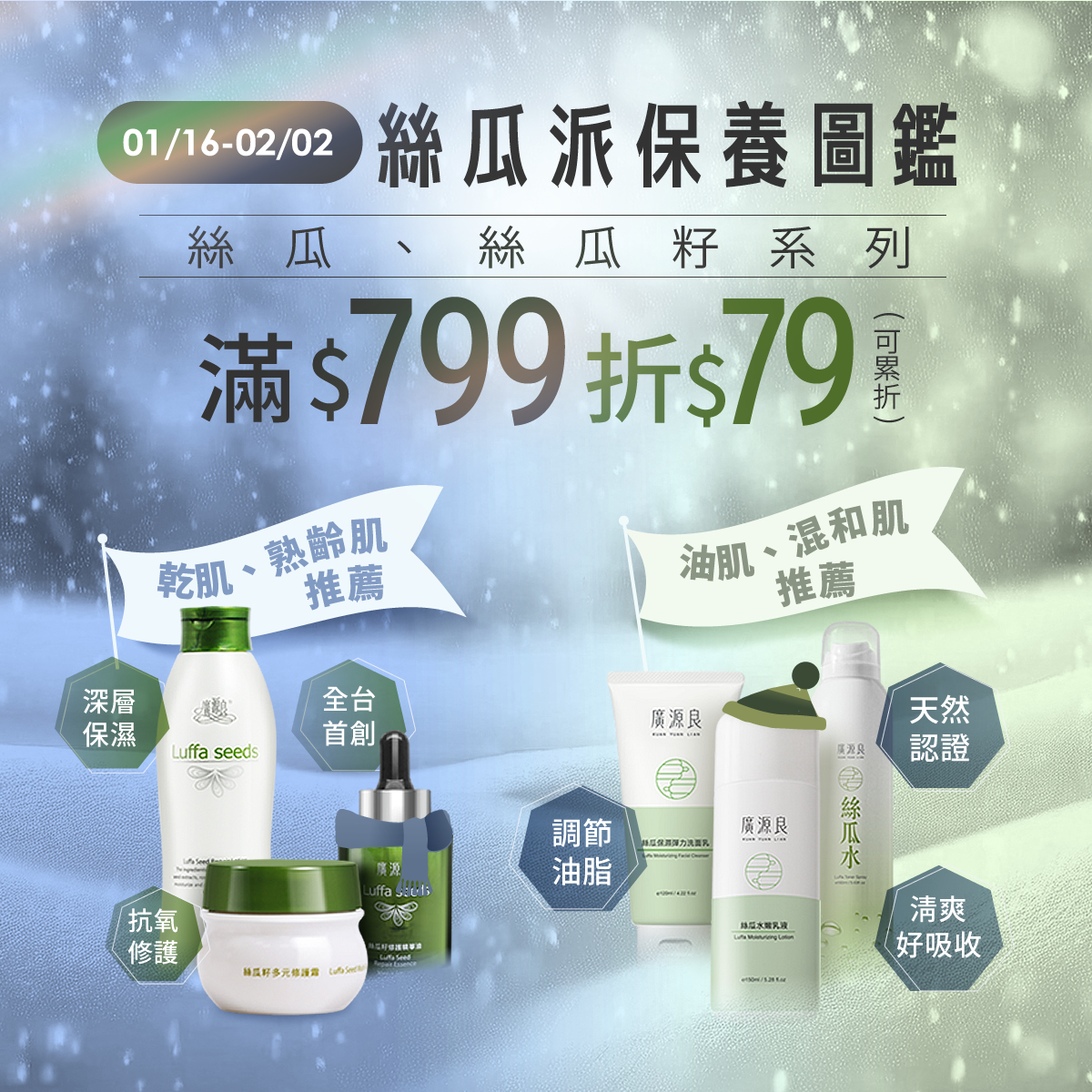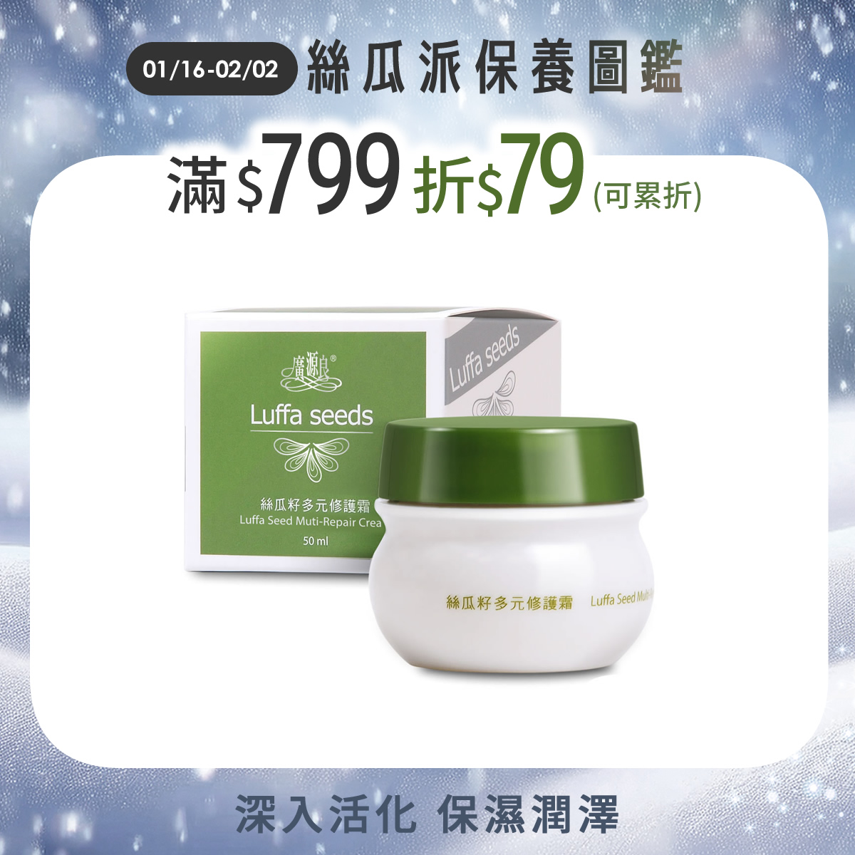 經典熱銷、零油感保濕絲瓜保濕活膚霜100ml (新配方升級)$299經典熱銷、零油感保濕 -