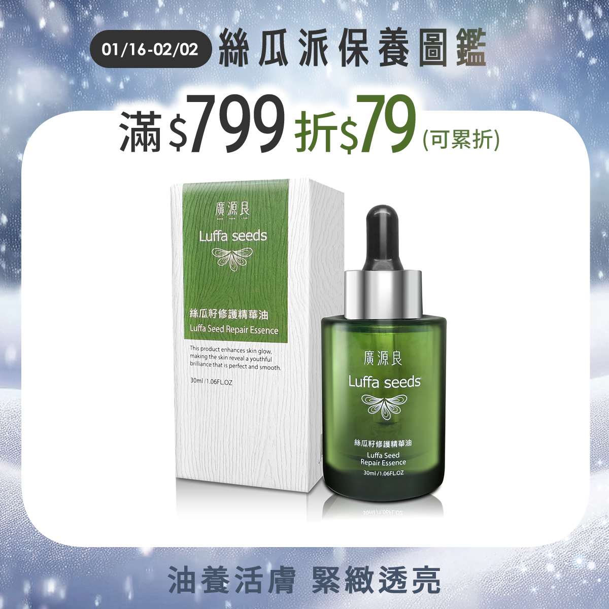 深層修復、活化肌膚絲瓜籽修護精華油30ml$720深層修復、活化肌膚 -