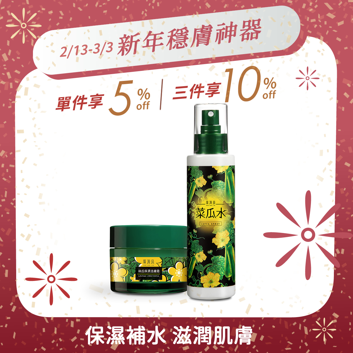 經典熱銷、零油感保濕絲瓜保濕活膚霜100ml (新配方升級)$299經典熱銷、零油感保濕