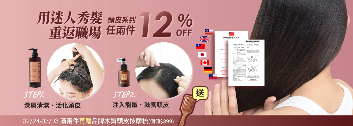 用迷人秀髮重返職場 ✨ 頭皮系列任兩件12%off,兩件再贈品牌木質頭皮按摩梳(價值$899) 💖點擊查看👀