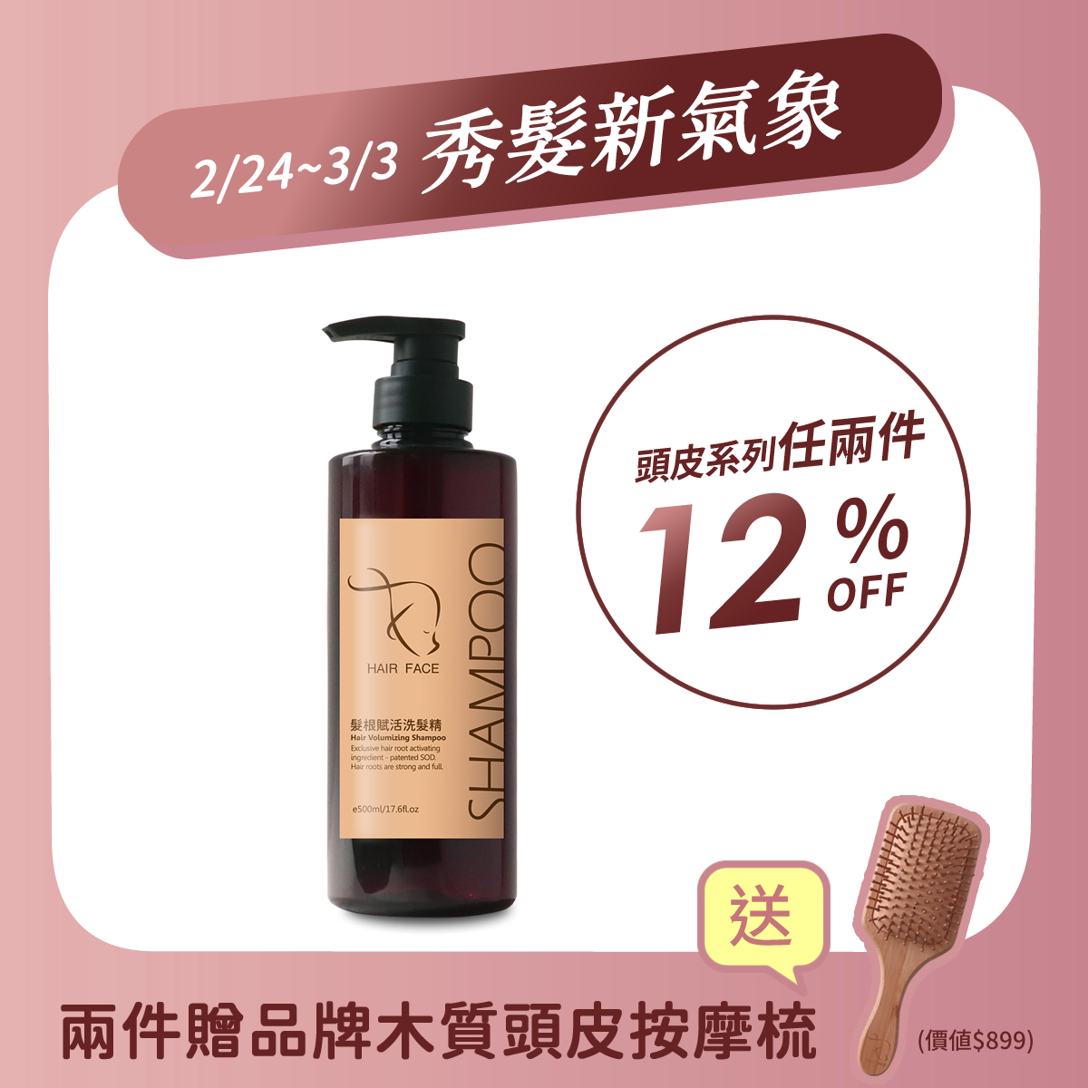 頭皮系列任兩件12%off,兩件再贈品牌木質頭皮按摩梳(價值$899)