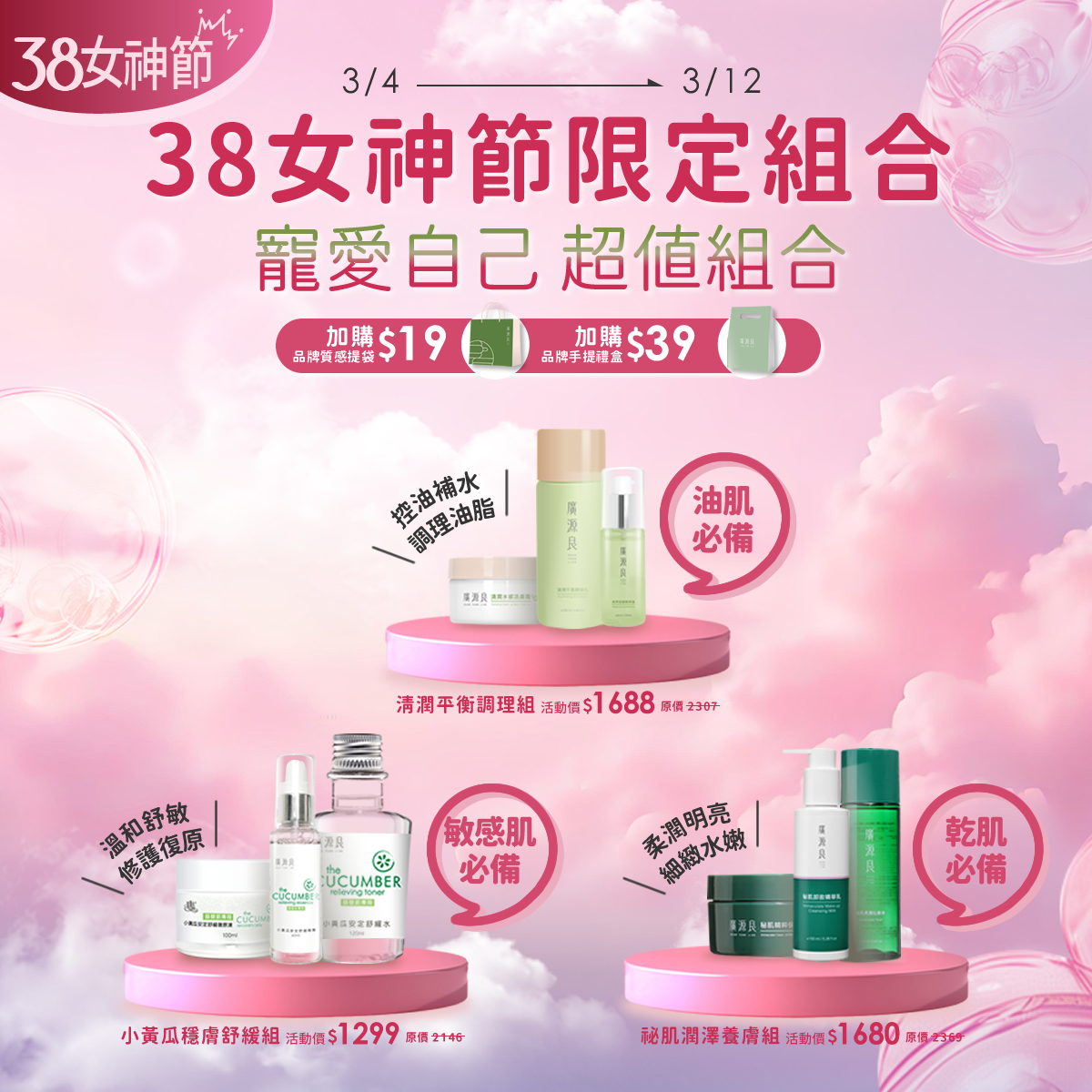 乾肌油肌的需求挖攏馬栽🐎清潤&秘肌專區 專區兩件即享10%off 三件再贈旅行套組
