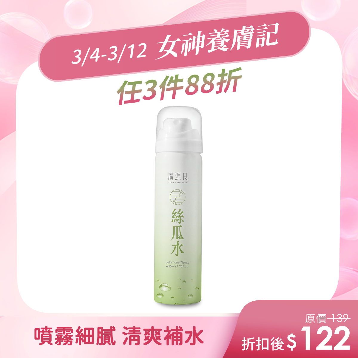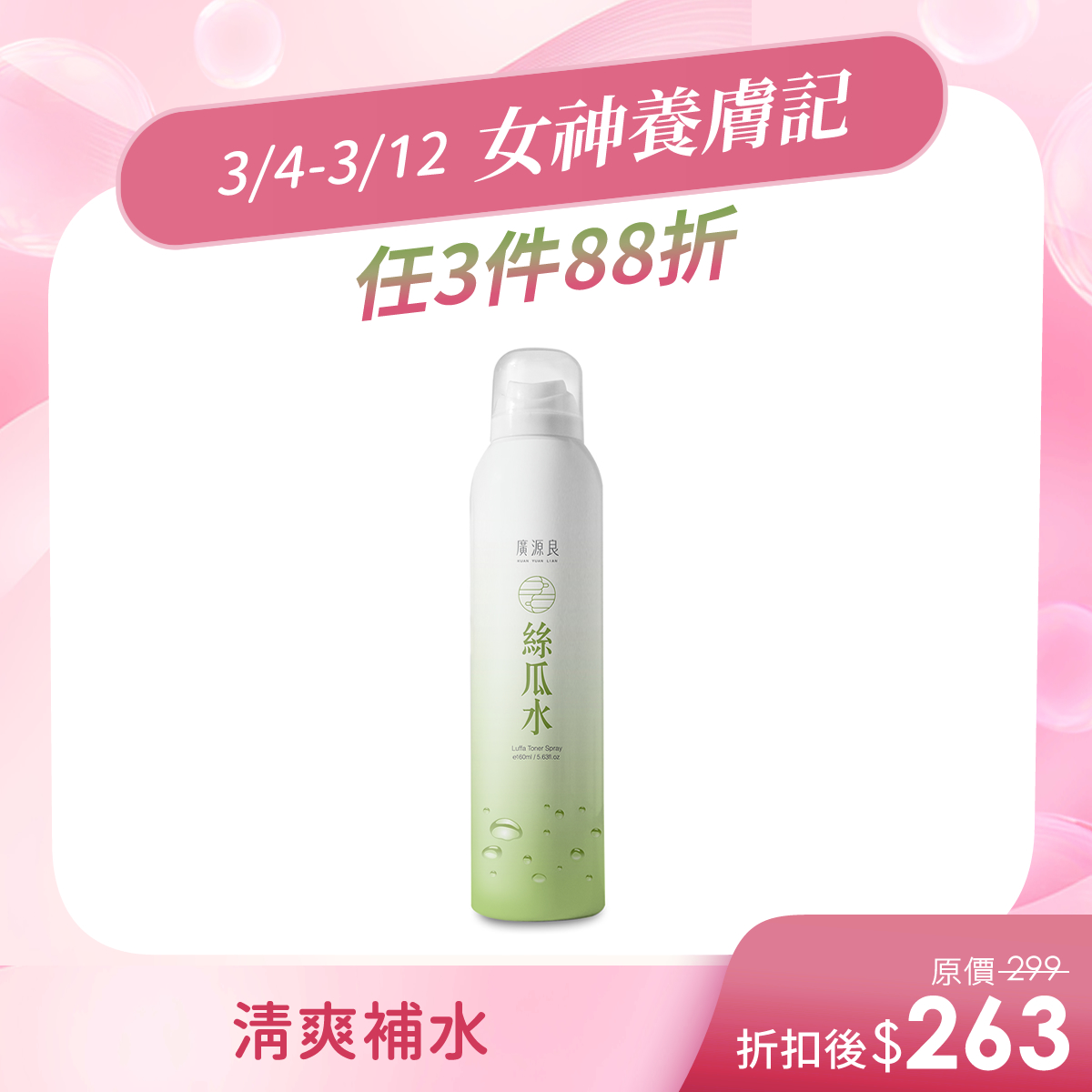保濕升級新配方、細緻噴霧絲瓜水噴霧瓶320ml$399保濕升級新配方、細緻噴霧 -