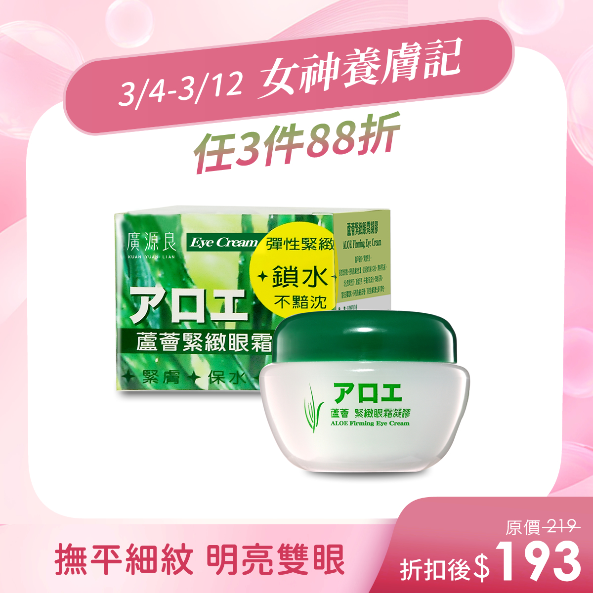 撫平細紋、緊實亮眼蘆薈緊緻眼霜凝膠$219撫平細紋、緊實亮眼 -