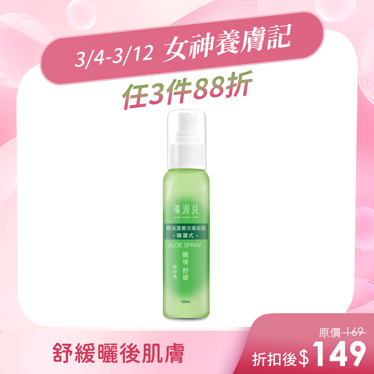 新一代噴霧式、免沖洗蘆薈曬後涼膚凝露(噴霧式)100ml$169新一代噴霧式、免沖洗 -