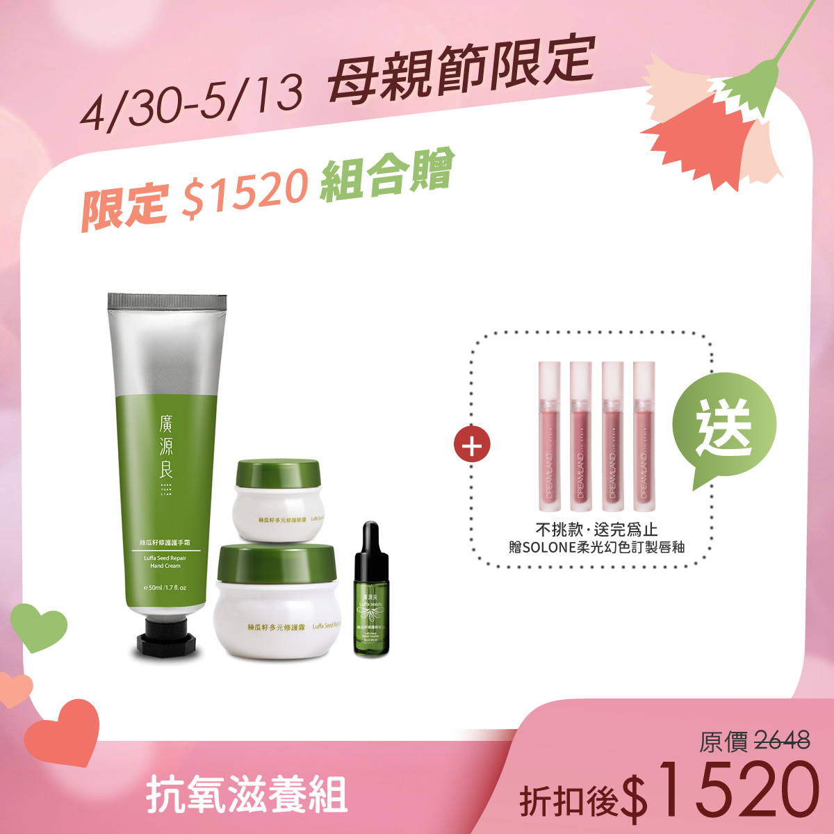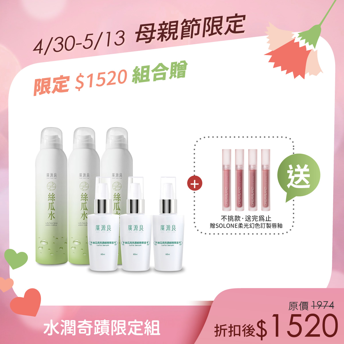 送給媽媽最滋潤的愛💖【母親節限定】美顏彈力組$1,520送給媽媽最滋潤的愛💖 -