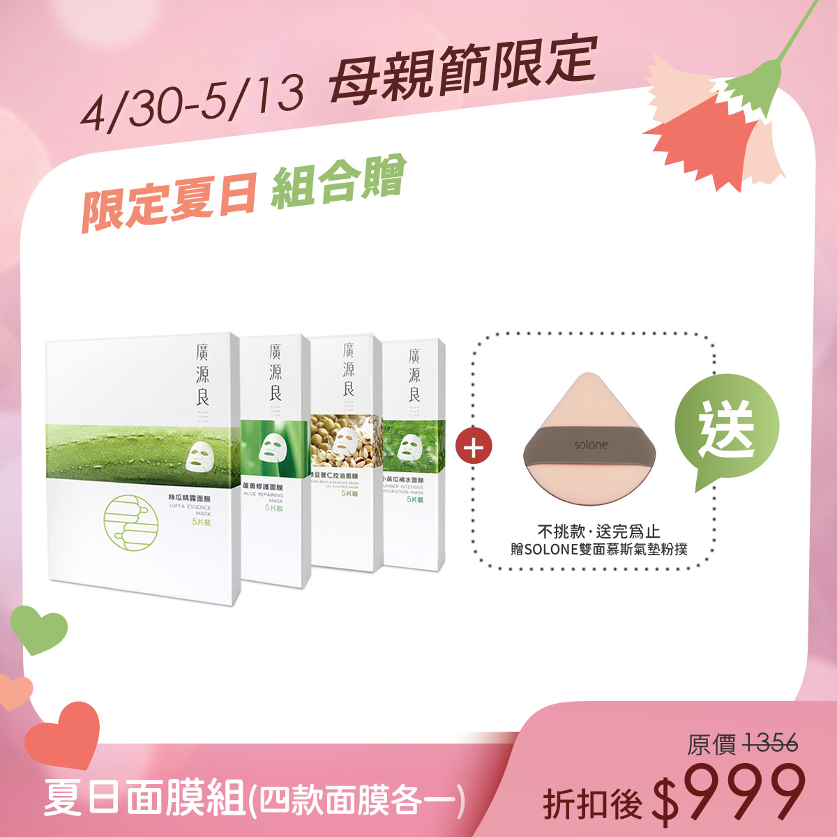 四款各一✨補足流失的水分【母親節限定】夏日面膜組$999四款各一✨補足流失的水分 -