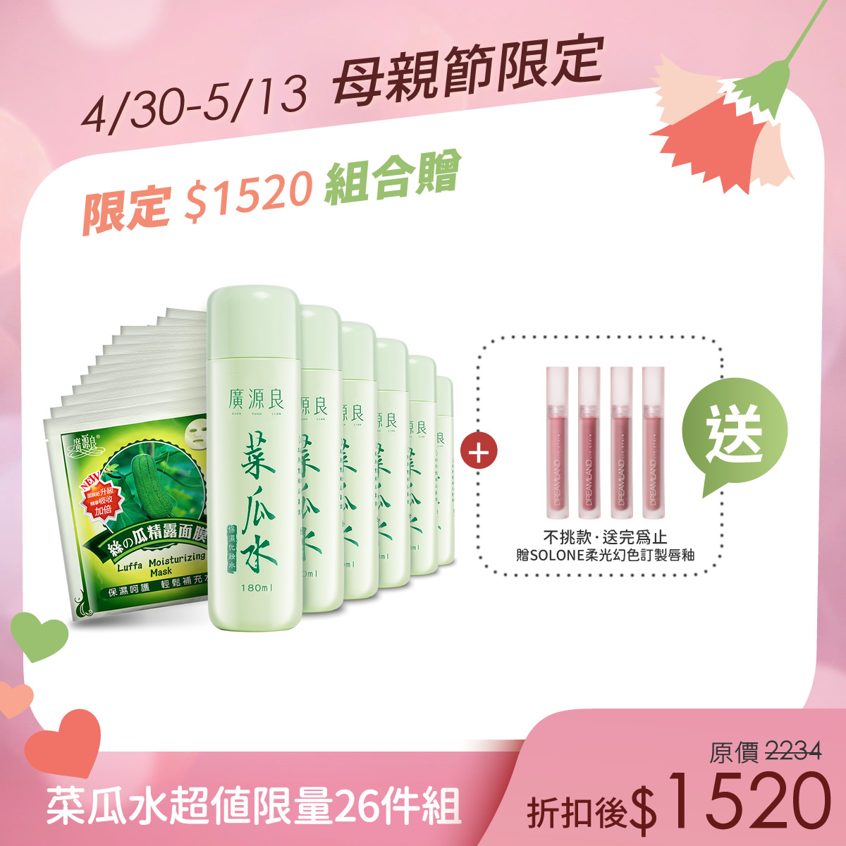 打造水嫩肌,超值26件組【母親節限定】菜瓜水超值限量26件組$1,520打造水嫩肌,超值26件組 -