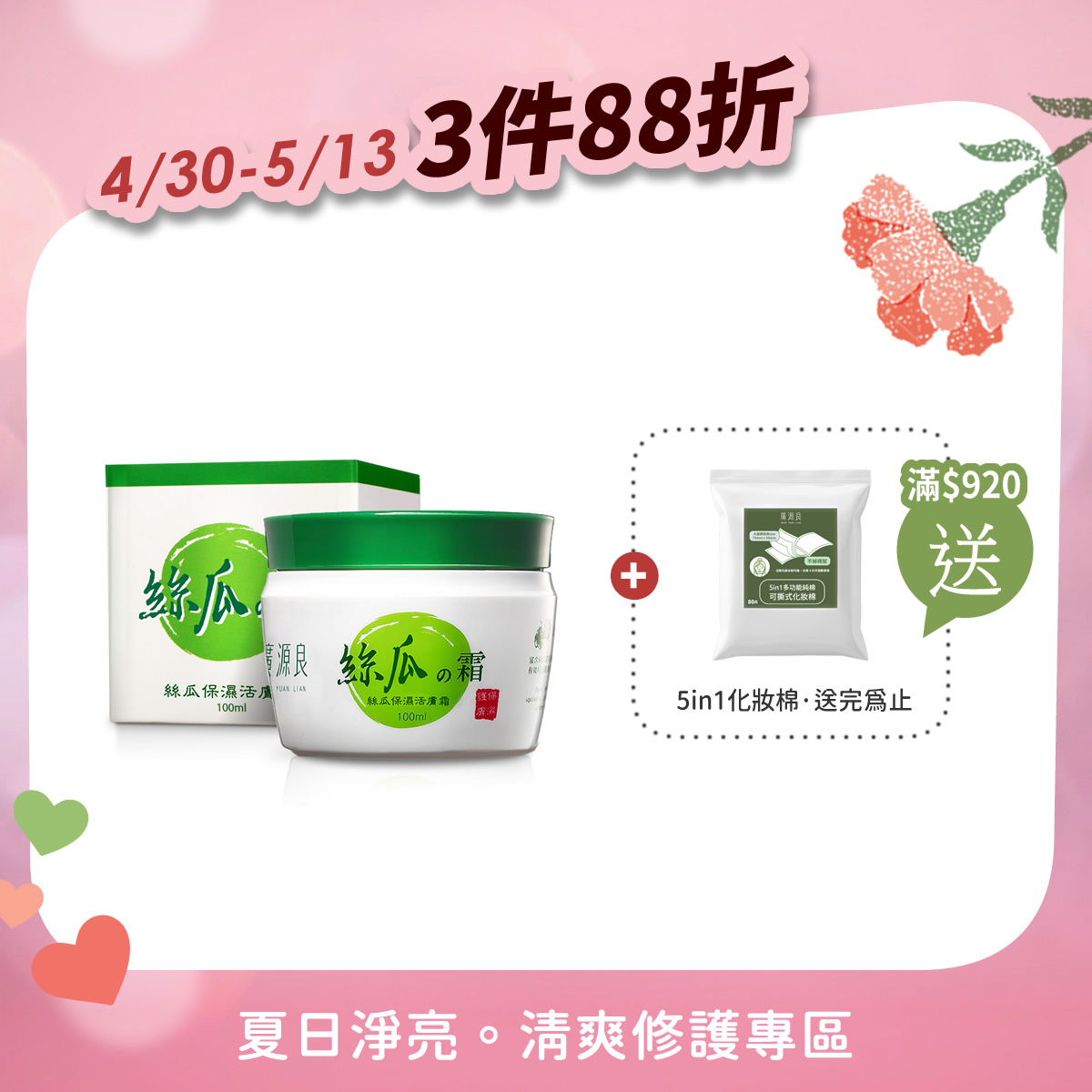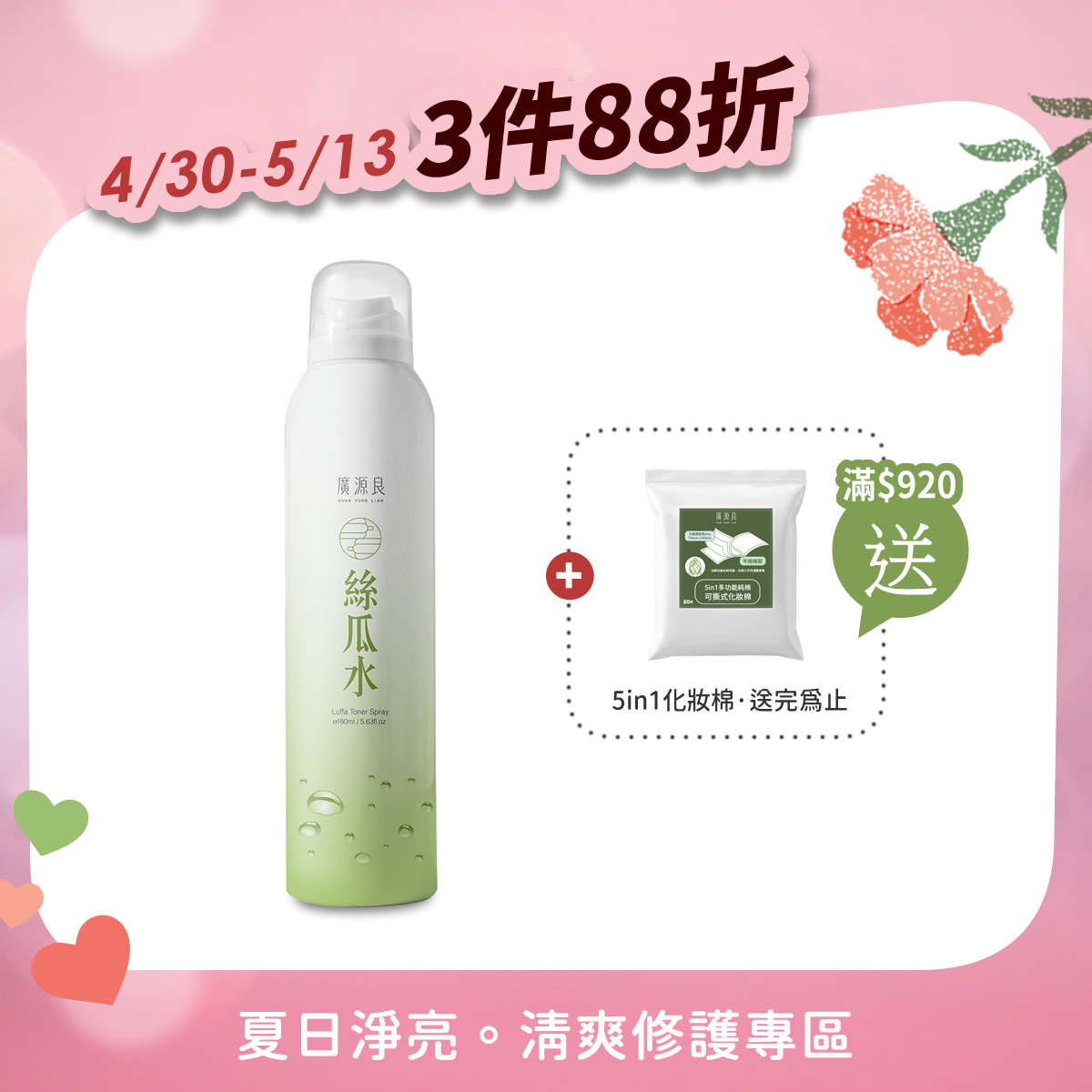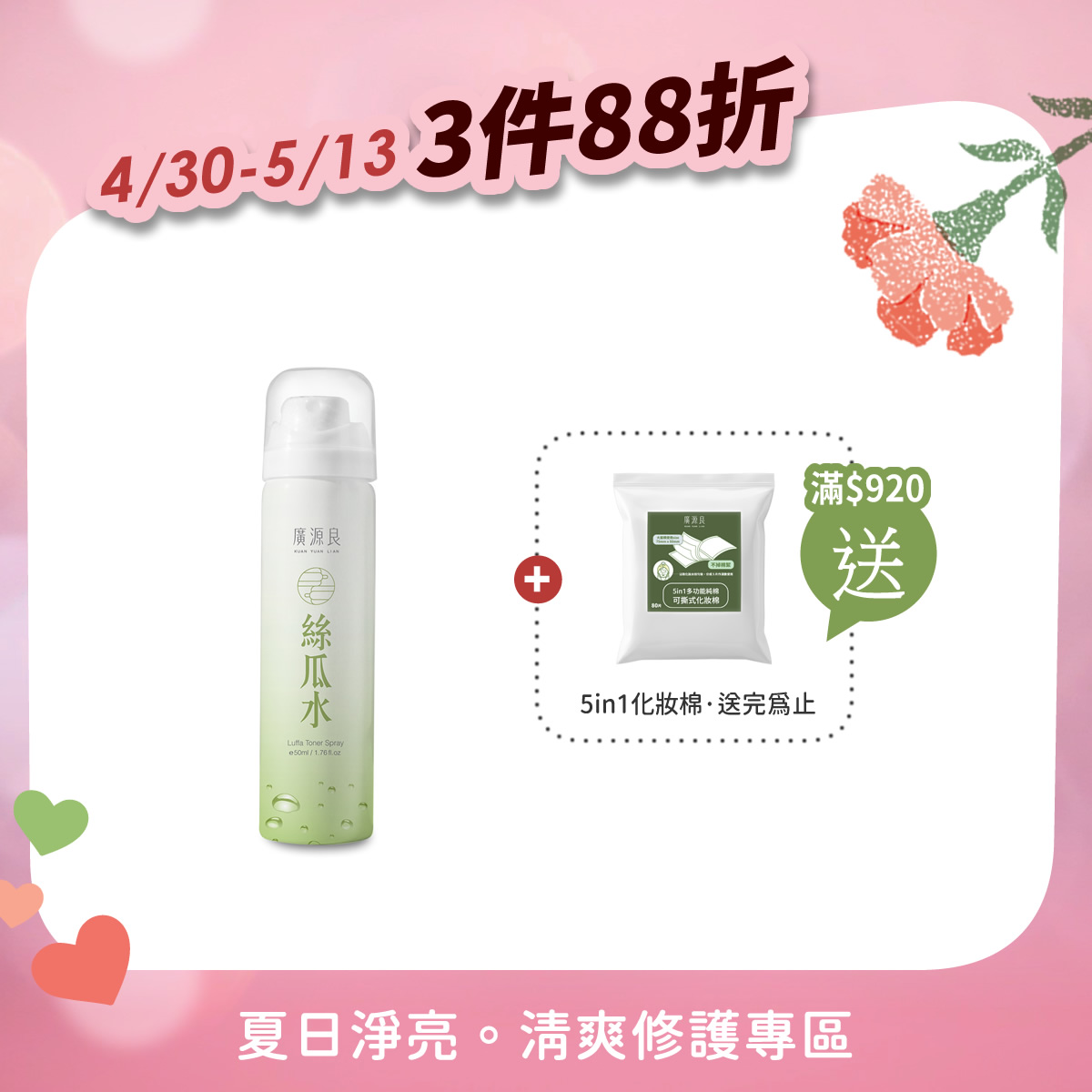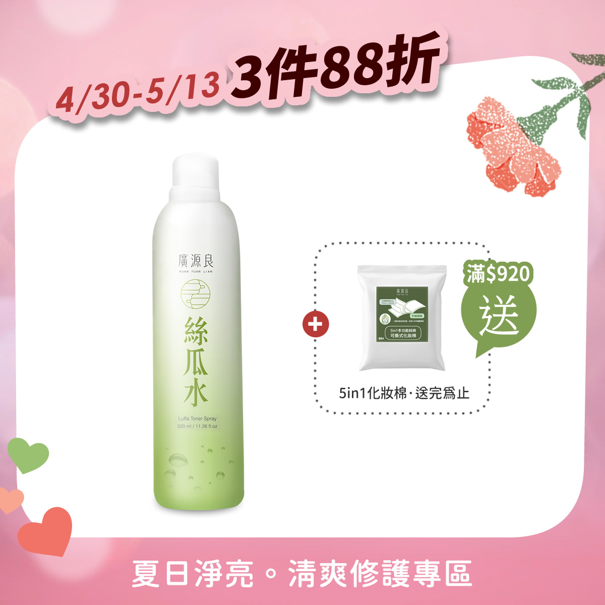 3件88折 【就愛你 再加碼】 滿 $920 送化妝棉