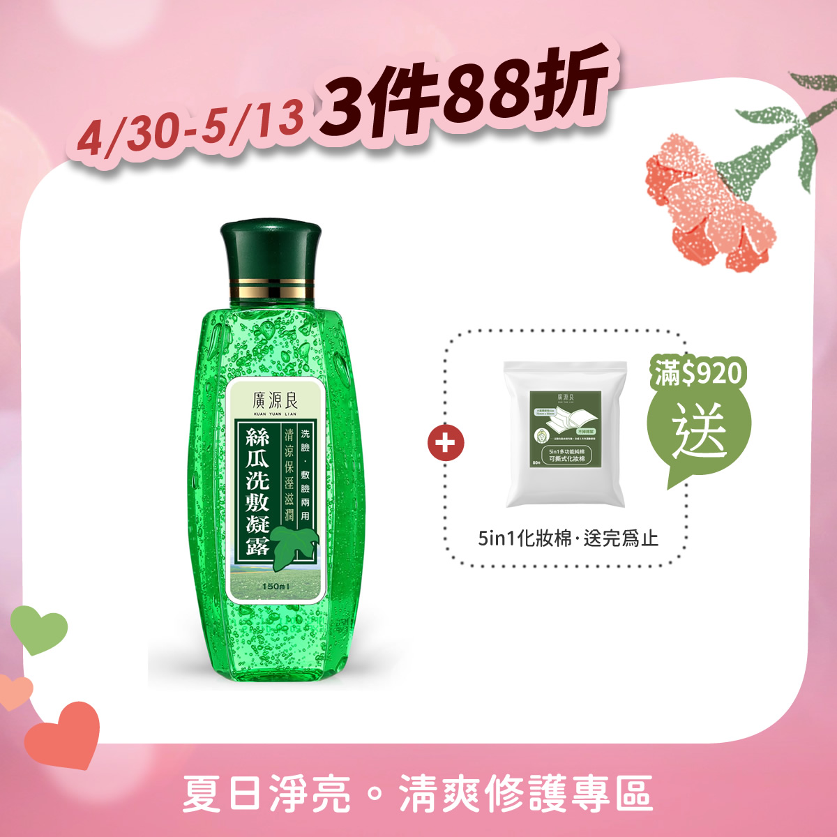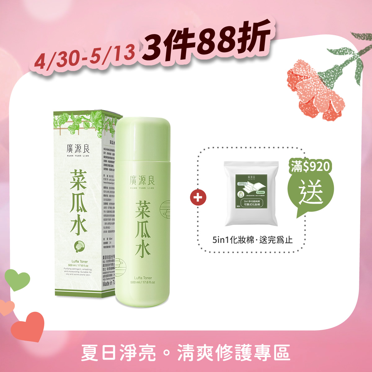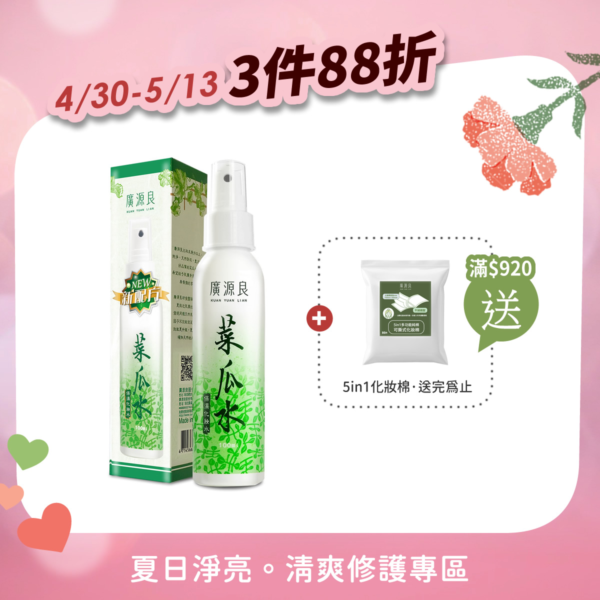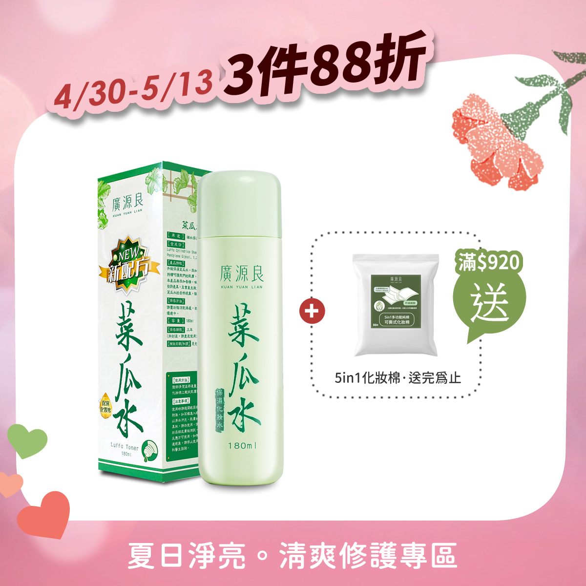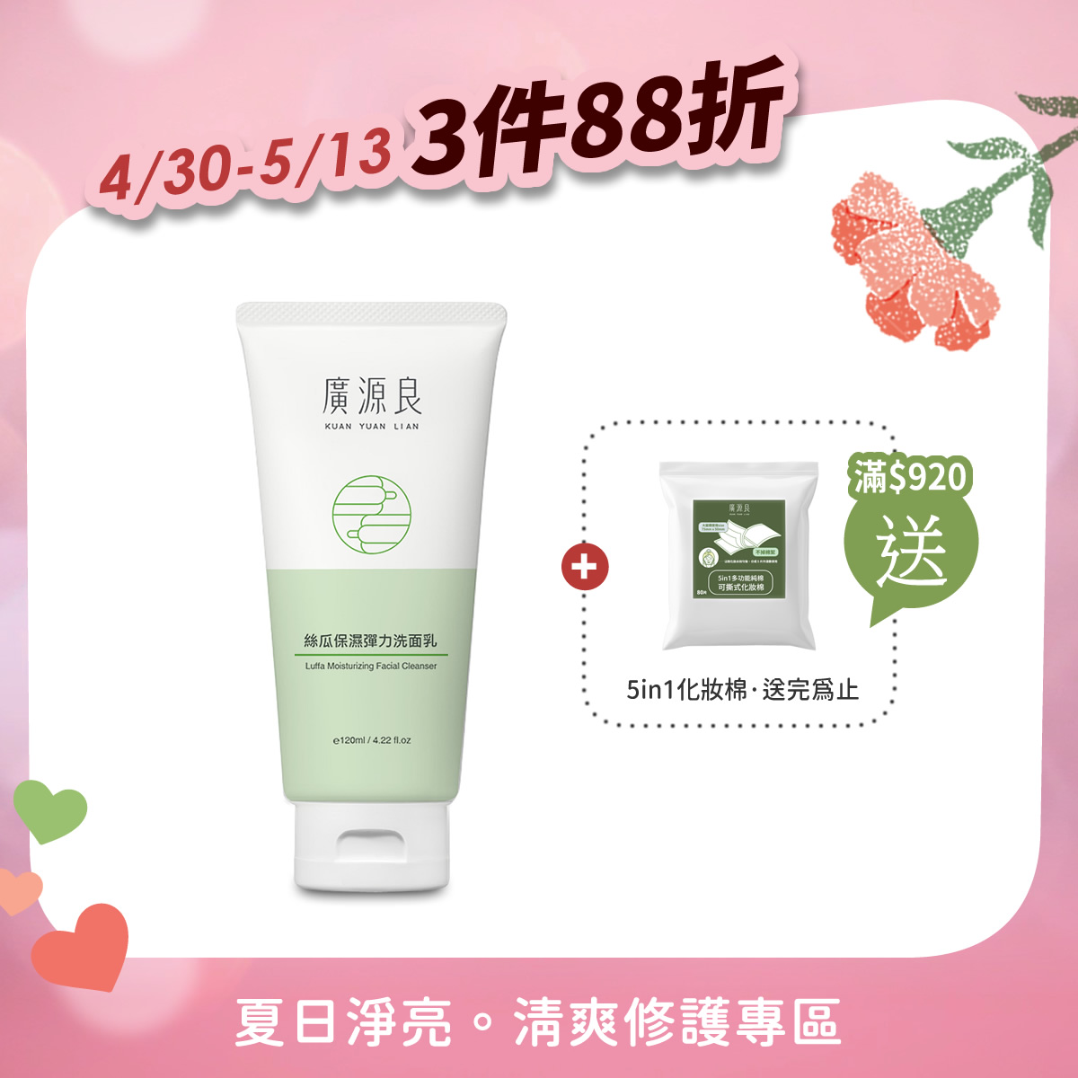 3件88折 【就愛你 再加碼】 滿 $920 送化妝棉