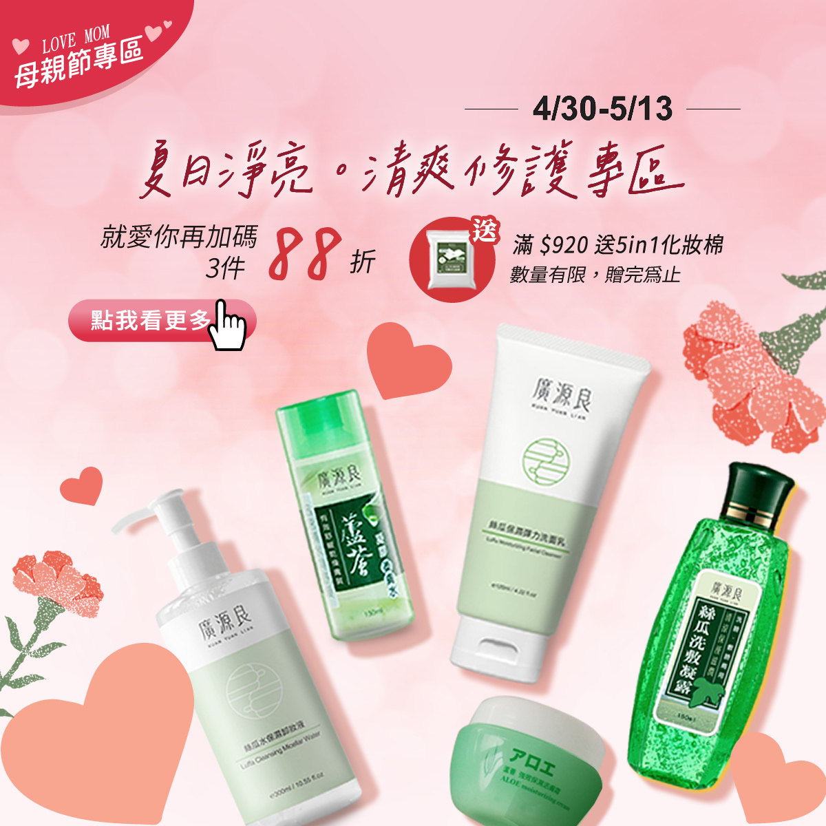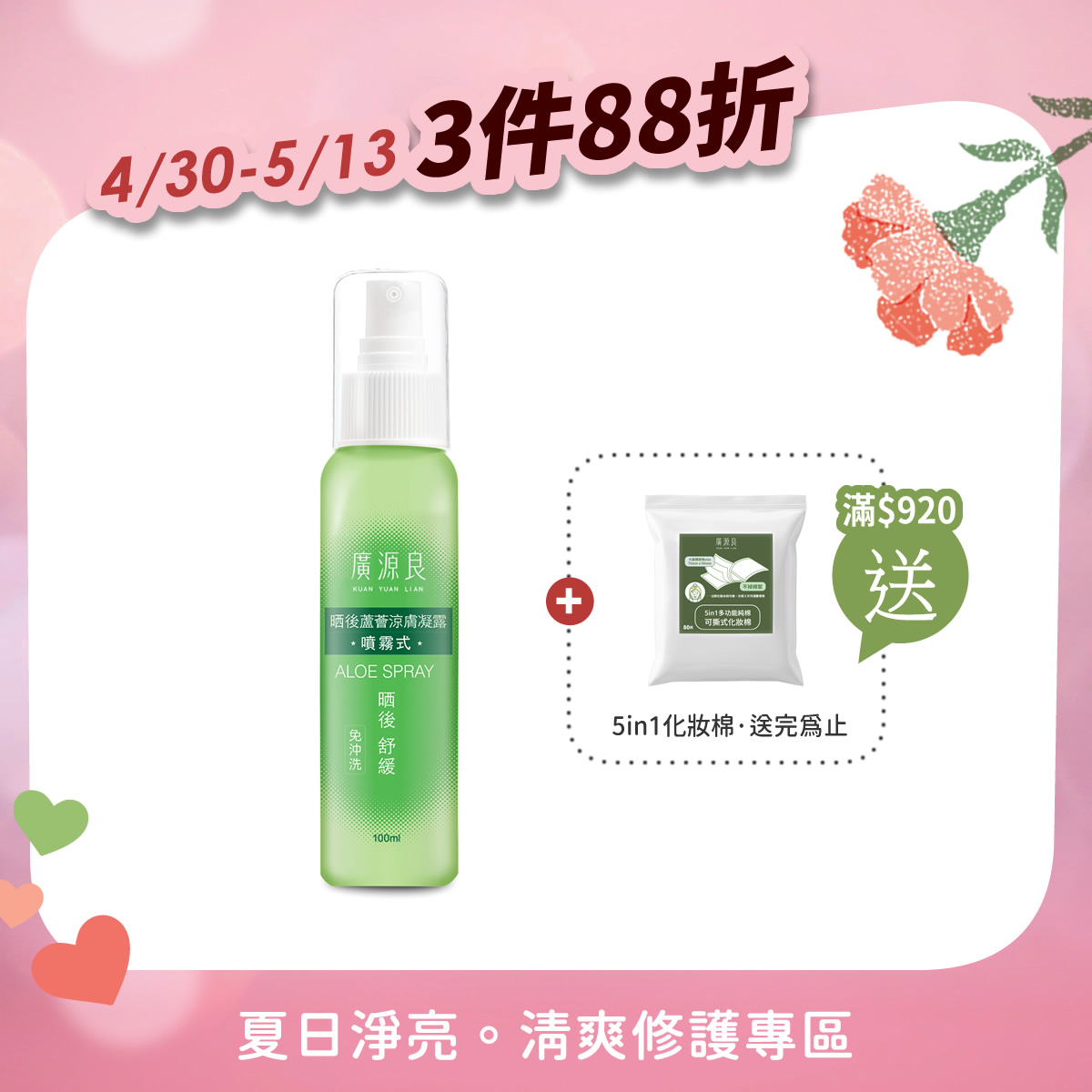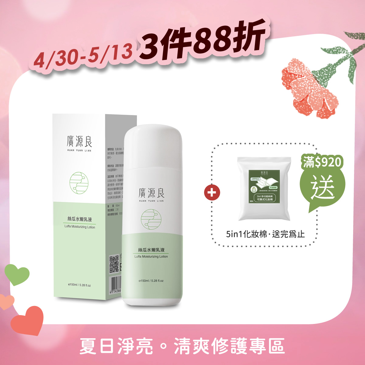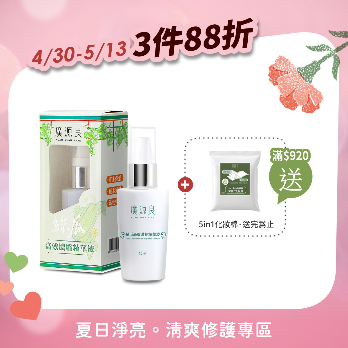 3件88折 【就愛你 再加碼】 滿 $920 送化妝棉