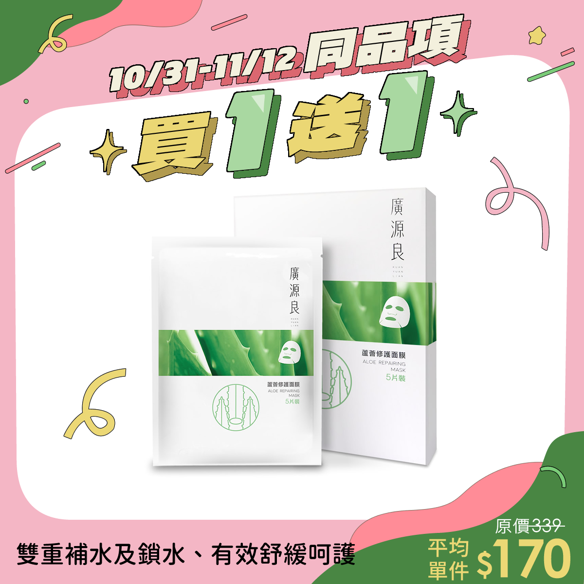 雙重補水及鎖水、有效舒緩呵護蘆薈修護面膜五入$339 -