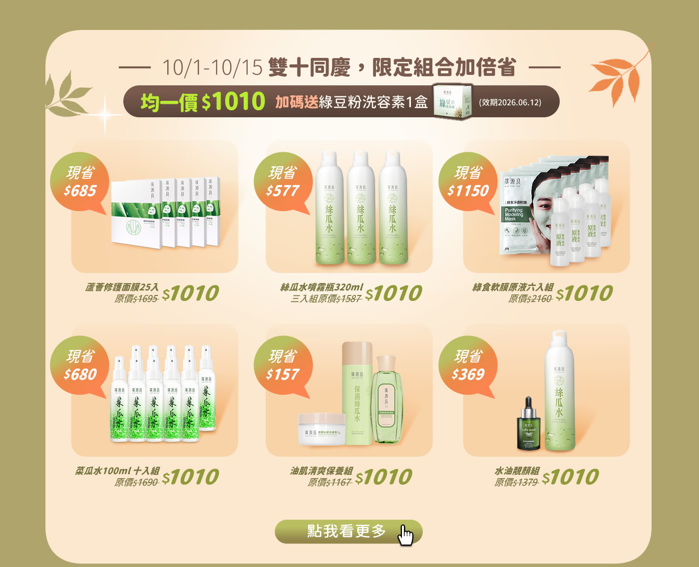 雙十同慶✨多入組合只要$1010,加碼再送綠豆粉,點我看更多👆👀..