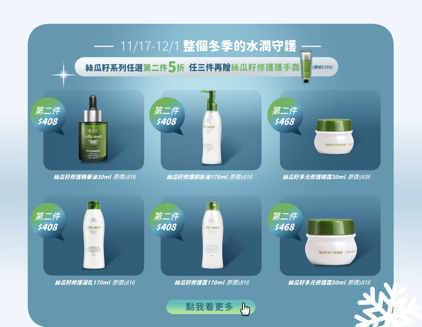 冬季的水潤守護 | 絲瓜籽系列第二件5折🔥滿件再贈護手霜