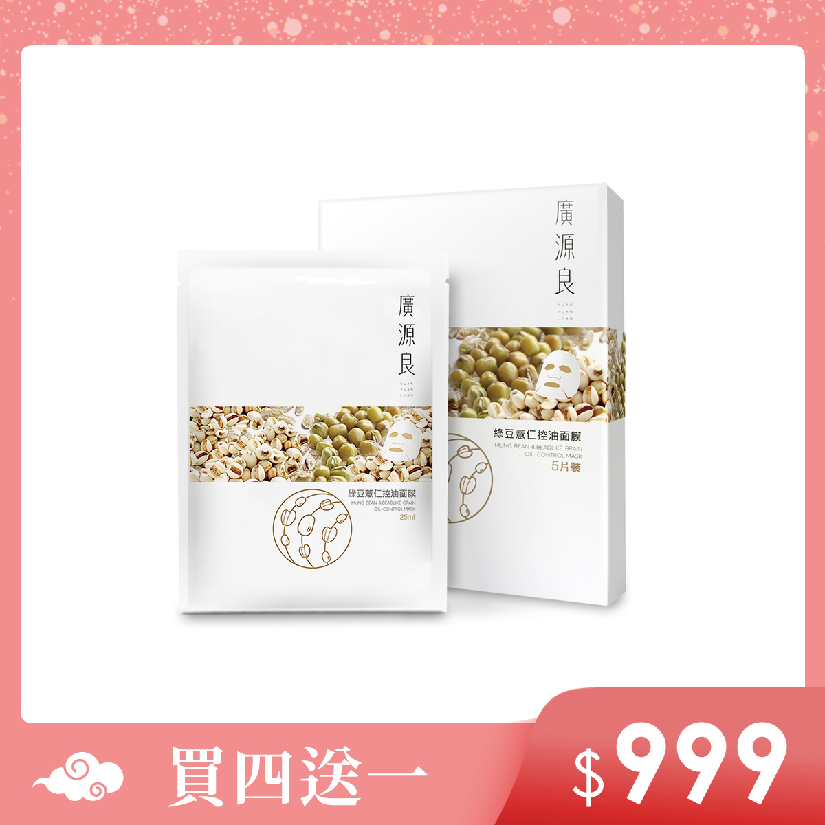 【限時】綠豆薏仁控油面膜五入